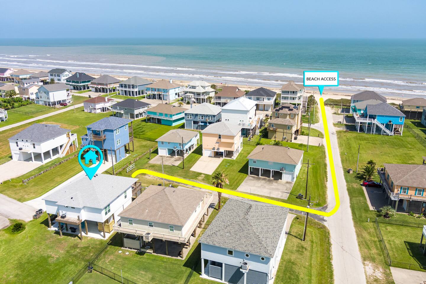 The neighborhood is centrally located in the heart of Crystal Beach and has direct walking or golf cart access (just a 1 minute walk). The large grocery store (The Big Store) is 0.7 miles away, and the largest strip center with Tia Juanita’s Fish Camp & Ocean Grill is 0.4 miles away.
