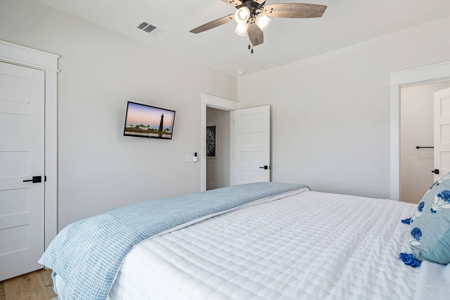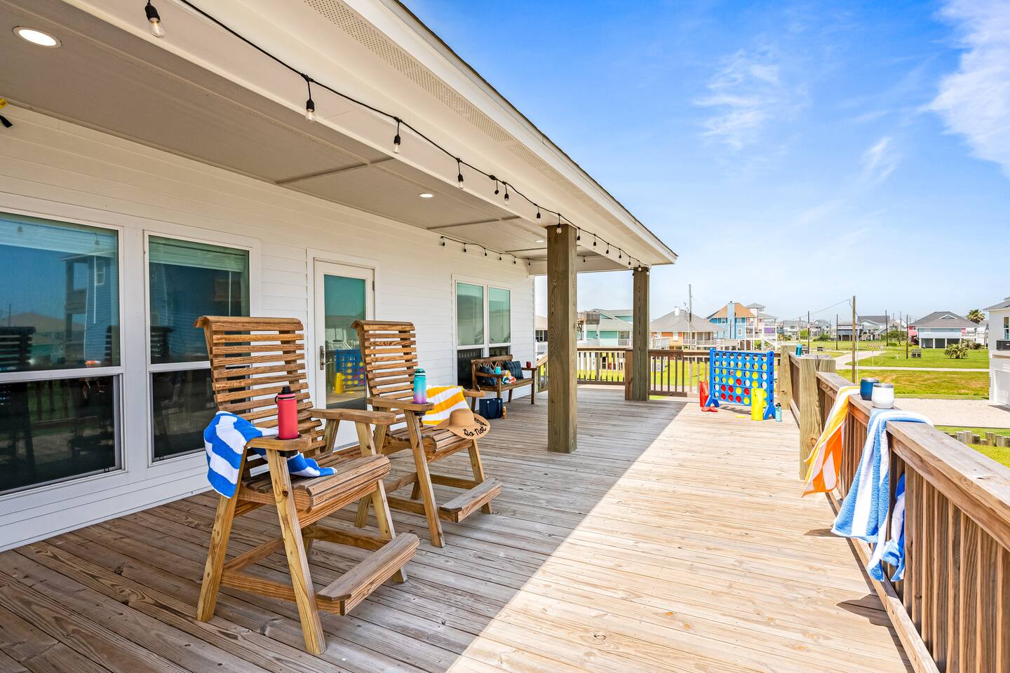 Everything you need is included for a fun and stress-free beach vacation: ☀ 4 Bedrooms/4 Bathrooms (3 primary suites with king-size beds and private bathrooms) ☀ Sleeps 12 comfortably (5 beds + queen sleeper sofa) ☀ Fresh bed & bath linens for 12 guests + 12 beach towels per stay ☀ Spa-style shampoo, conditioner & body wash ☀ Large deck with peek-a-boo Gulf views, outdoor seating & swings ☀ Fully equipped chef’s kitchen with 2 full-size refrigerators ☀ High chair, pack-n-play, kids dinnerware & utensils ☀ Starlink high-speed WiFi ☀ Smart TVs in each bedroom ☀ Board games, books & puzzles throughout the house ☀ Full-size washer & dryer ☀ Weber & Acorn charcoal grills (BYOC) with grilling accessories ☀ Cornhole, Ladderball, Spikeball, Giant Jenga, Jumbo Connect 4, Horseshoes & Frisbees ☀ Beach chairs, beach wagon, cooler & a rotating supply of beach toys ☀ Outdoor shower with hot & cold water ☀ Adirondack lounge chairs ☀ On-site parking for 4–6 vehicles ☀ Dog-friendly ($200 fee, up to 2 dogs — please add dogs to your reservation) ☀ Excellent location — 1-minute walk to the beach, close to The Big Store, restaurants & shopping STARTER PACK We provide a complimentary starter pack including: coffee, trash bags, paper towels, household cleaner, dish sponge, dish soap, dishwasher soap, laundry detergent, hand soap, shampoo, conditioner, body wash, and 1–2 rolls of toilet paper in each bathroom. 🛏️ BEDROOMS There’s plenty of space to unwind across four comfortable bedrooms. Three primary suites feature king-size beds and private bathrooms. The fourth bedroom includes two full beds with a full bathroom nearby. A queen sleeper sofa is also available. Each bedroom includes a 32” Roku Smart TV, custom built-in closets, and a ceiling fan. 🛁 BATHROOMS Four full bathrooms are stocked with plush towels, spa-style shampoo, conditioner & body wash, and a hair dryer. Two bathrooms feature bathtubs, and with two hot water heaters, everyone can enjoy a warm shower. An outdoor shower with hot and cold water makes rinsing off after beach days easy. 🍴LIVING, KITCHEN & DINING The open-concept layout is perfect for gathering together. Relax with a movie on the 75” TV, play board games, or cook meals in the fully equipped kitchen featuring two full-size refrigerators and a large pantry. Dining and island seating accommodates up to 12 guests. Small appliances include a dual Keurig, tea kettle, crockpot, air fryer, toaster, hand mixer, blender, and margarita/slush machine. 🏝️OUTDOOR ENTERTAINMENT Enjoy outdoor living on both levels. The ground level includes charcoal grills, Adirondack chairs, a patio table, and plenty of yard games. The upper deck features peek-a-boo Gulf views, swings, outdoor seating, a high-top dining area, and string lights for the perfect evening atmosphere. 🌊 YOUR CRYSTAL BEACH ESCAPE AWAITS From the moment you arrive, Take It Easy is ready to help you unplug, unwind, and make unforgettable beach memories.