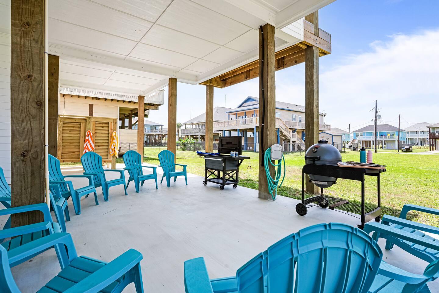 **Travel Insurance** We HIGHLY recommend that you purchase third-party travel insurance to cover a broad array of possible damages and losses. We are unable to offer refunds for cancellations that are outside of our control. This includes weather related events. In the event of a mandatory evacuation we will issue a refund for unused days. **Parking** We have 4-6 parking spaces at our home depending on the size of the vehicle. If you are bringing a trailer with a UTV or golf cart, you should account for this in the space available. Please do not park on our neighbors property. **Plumbing** Our homes in Crystal Beach are on a fragile sewer system. Please dispose of food waste into the garbage and not down the drain. Also refrain from flushing anything down the toilet except for toilet paper.